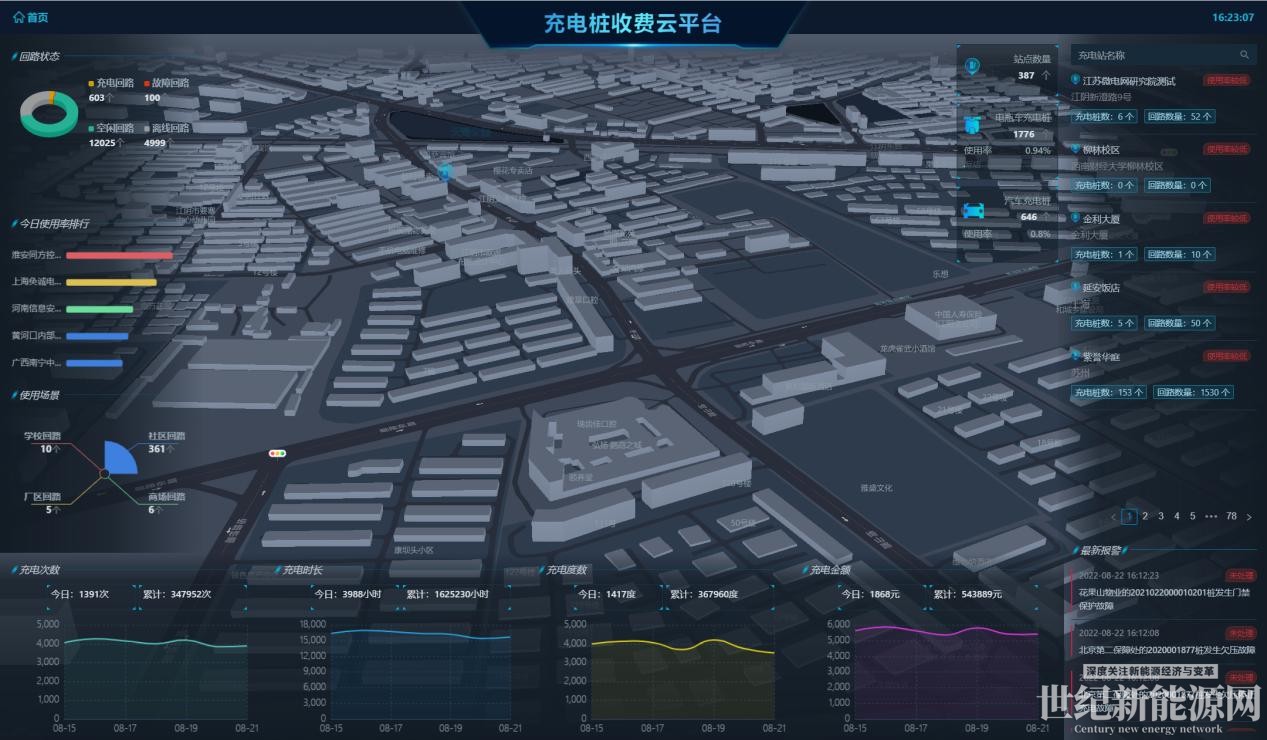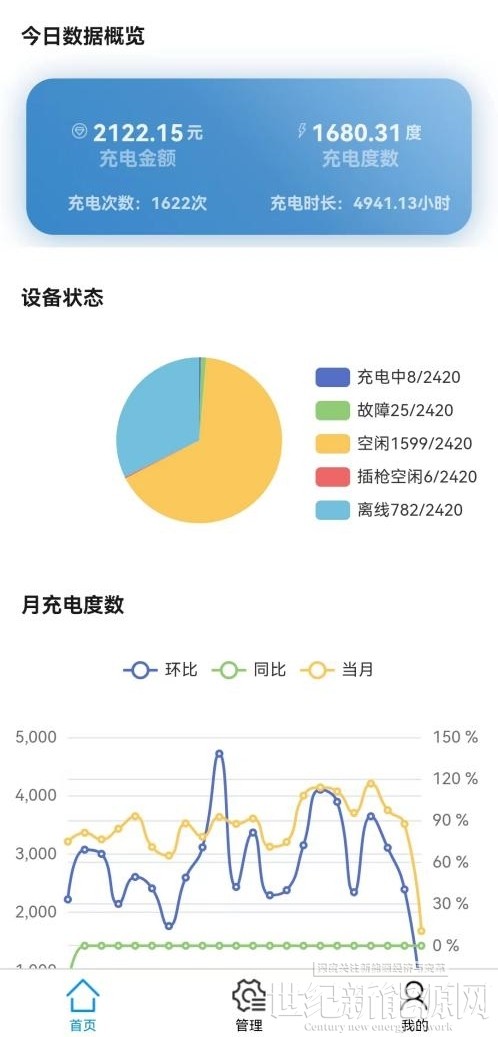 智能化大屏展示站點分布情況,對設備狀態(tài)、設備使用率、充電次數(shù)、充電時長、充電金額、充電度數(shù)、充電樁故障等進行統(tǒng)計顯示,同時可查看每個站點的站點信息、充電樁列表、充電記錄、收益、能耗、故障記錄等。統(tǒng)一管理小區(qū)充電樁,查看設備使用率,合理分配資源。