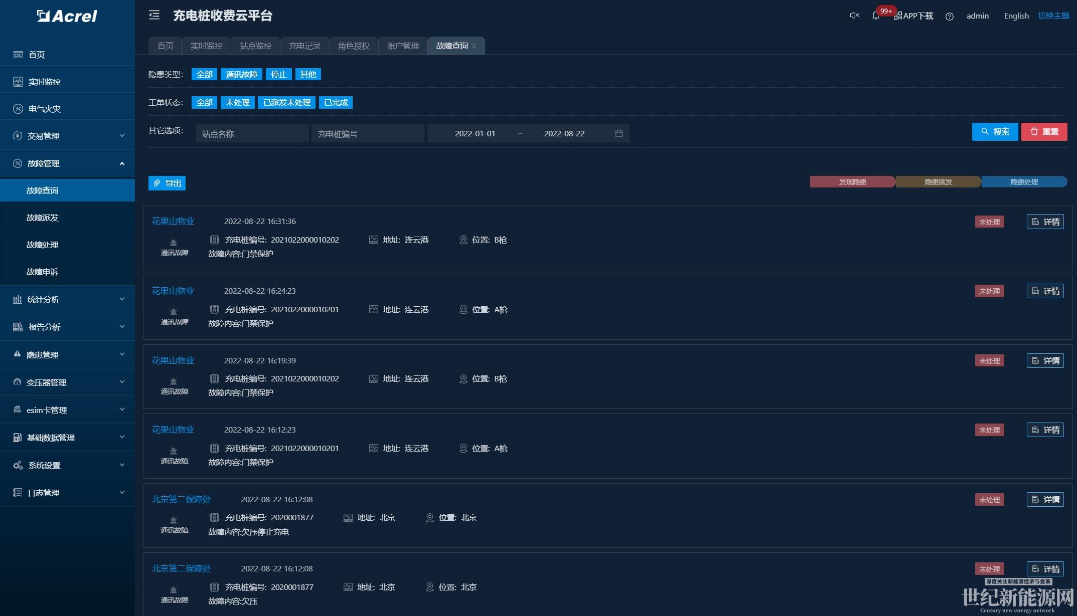 面向運維人員使用,可以對站點和充電樁進行管理、能夠進行故障閉環(huán)處理、查詢流量卡使用情況、查詢充電\充值情況,進行遠程參數(shù)設置,同時可接收故障推送