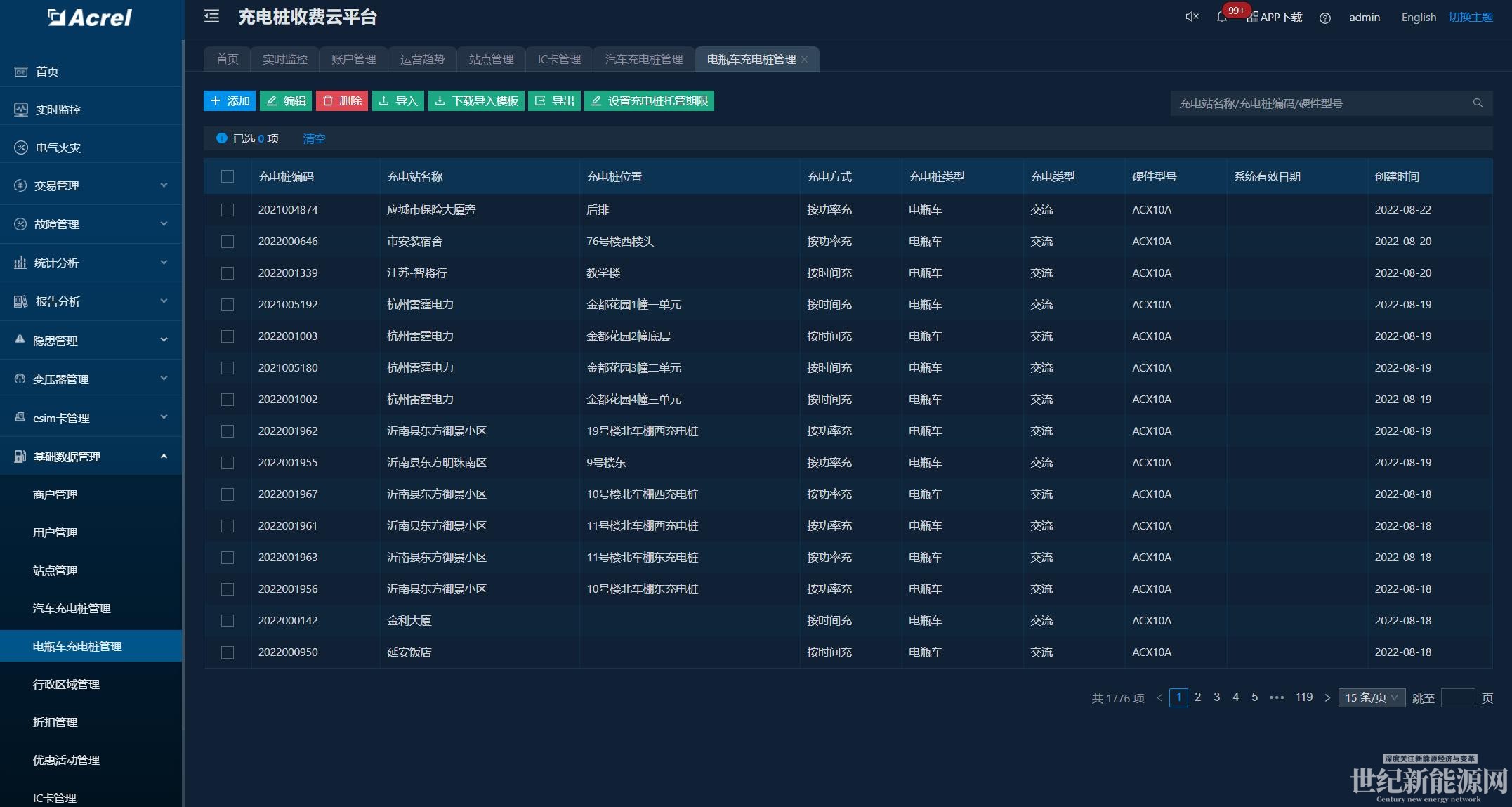 AcrelCloud-9000安科瑞充電柱收費運營云平臺系統(tǒng)通過物聯(lián)網(wǎng)技術對接入系統(tǒng)的電動電動自行車充電站以及各個充電整法行不間斷地數(shù)據(jù)采集和監(jiān)控,實時監(jiān)控充電樁運行狀態(tài),進行充電服務、支付管理,交易結算,資要管理、電能管理,明細查詢等。同時對充電機過溫保護、漏電、充電機輸入/輸出過壓,欠壓,絕緣低各類故障進行預警;充電樁支持以太網(wǎng)、4G或WIFI等方式接入互聯(lián)網(wǎng),用戶通過微信、支付寶,云閃付掃碼充電。
