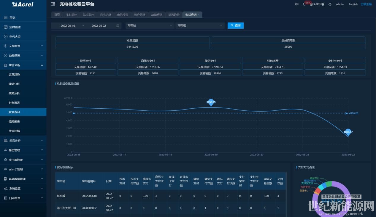 通過系統(tǒng)平臺,從充電站點、充電設施、、充電時間、充電方式等不同角度,查詢充電交易統(tǒng)計信息、能耗統(tǒng)計信息等。