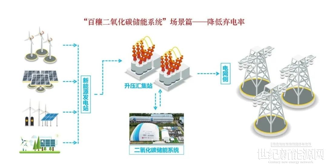 降低新能源棄電率,將是碳中和進程中的長期挑戰(zhàn)。隨著新能源電力在總電力構(gòu)成中占比的加大,新能源棄電壓力亦隨之增大。通過百穰二氧化碳儲能系統(tǒng)降低棄電率,不僅經(jīng)濟優(yōu)勢明顯、容易毗鄰升壓匯集站建設(shè),其所具有的易擴容性,還能夠隨著新能源電站并網(wǎng)數(shù)量的增加,隨時進行容量擴容或充放電功率擴容,從而在提高升壓匯集站利用率的同時,始終將新能源棄電率控制在較低水平。
