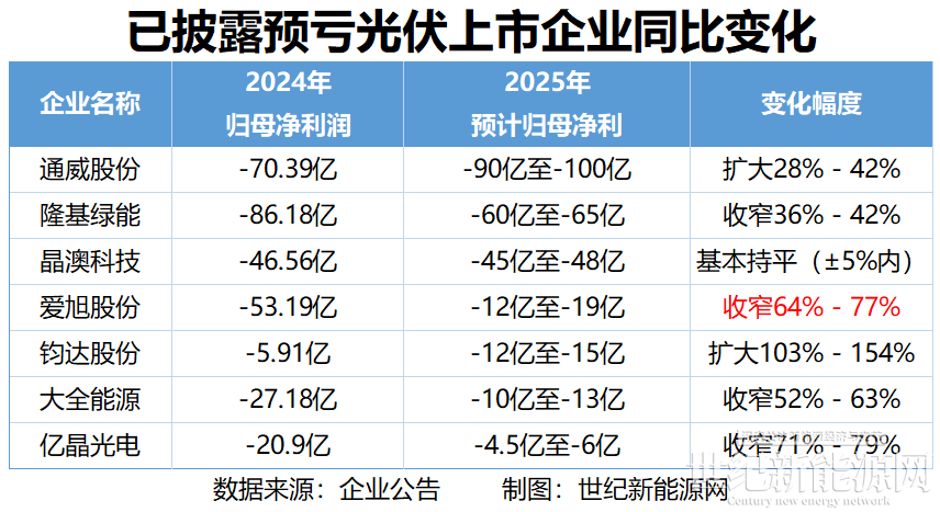 2026年1月,部分光伏上市企業發布2025年度業績預虧公告。經梳理可見,愛旭股份歸母凈利潤虧損幅度同比收窄高達64%-77%。這一數據不僅釋放出公司財務狀況改善的積極信號,更是其戰略轉型落地見效、產品結構優化升級、經營效率穩步提升,疊加行業周期邊際調整的綜合體現,同時也折射出光伏行業深度調整期的結構性分化特征。