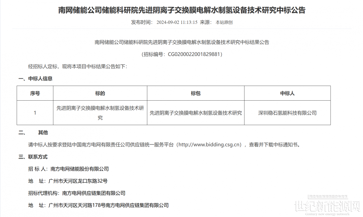 2024年9月2日,深圳穩石氫能科技有限公司正式中標全球首套單系統1.25MW-AEM(陰離子交換膜)電解水制氫項目,刷新了目前全球最大單系統功率AEM制氫項目的記錄,同時也開啟了國內兆瓦級AEM商業化應用示范,這標志著AEM電解水制氫技術的產業化進入了新的階段。