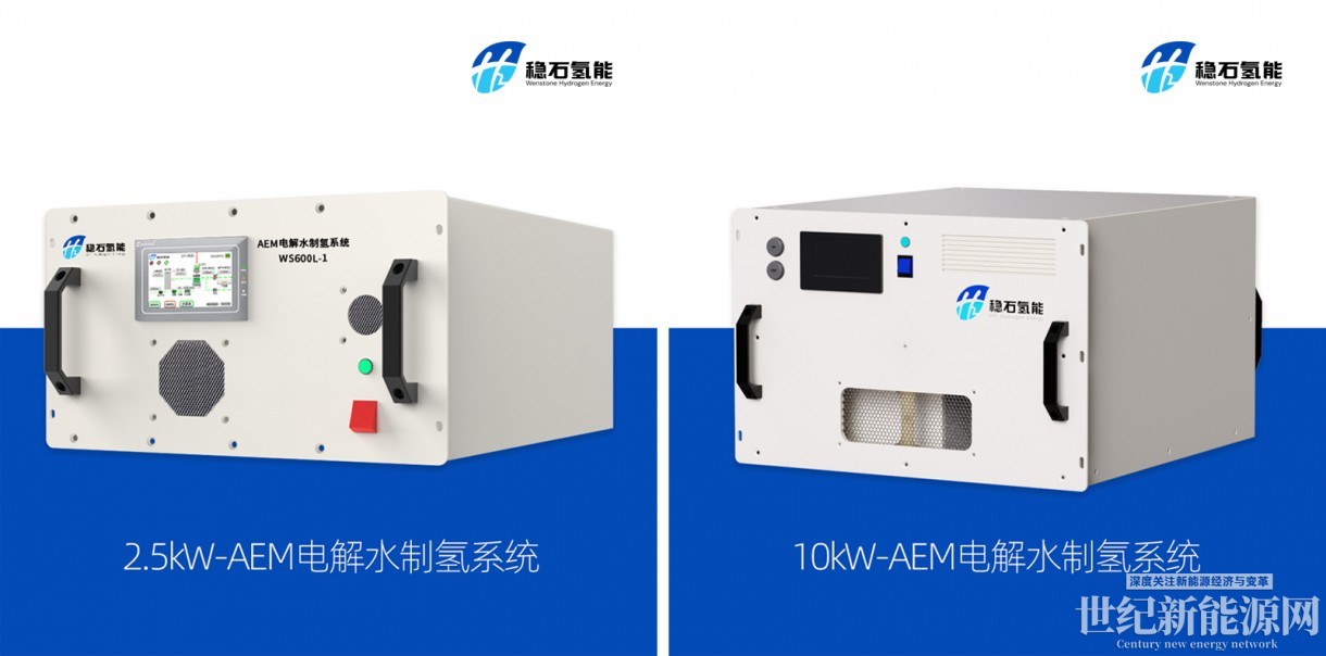 在國內,穩石氫能基于對高強度陰離子膜的研究積累與非貴金催化劑性能不斷的突破,于2023年相繼推出了2.5kW、10kW規格的AEM電解槽系統,率先完成了從技術到產品的突破。