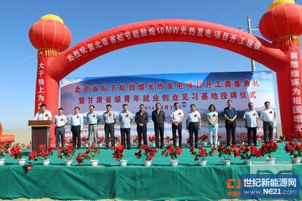 敦煌市委常委、常務副市長茍小衛在致辭中強調,“敦煌市規劃到2020年建成550萬千瓦太陽能發電裝機,其中光熱發電裝機50萬千瓦。此次首航節能開工建設10MW光熱發電項目,使敦煌實現了光熱發電裝機零的突破,將有效帶動敦煌光熱發電產業做大做強。”