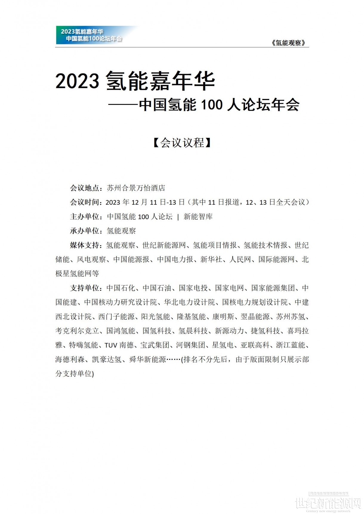 2023氫能嘉年華 中國氫能100論壇年會 大會日程
